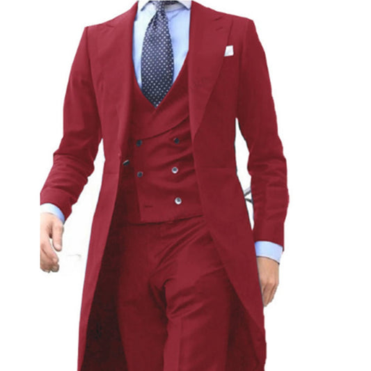 Long Coat Designs Chinese Red Men Suit Gentle Mens