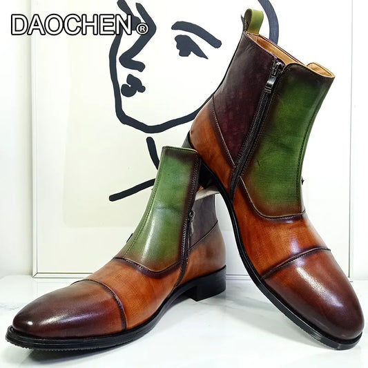 LUXURY MEN'S BOOTS MIXED COLORS CHELSEA BOOTS BUCKE STRAP CASUAL MENS