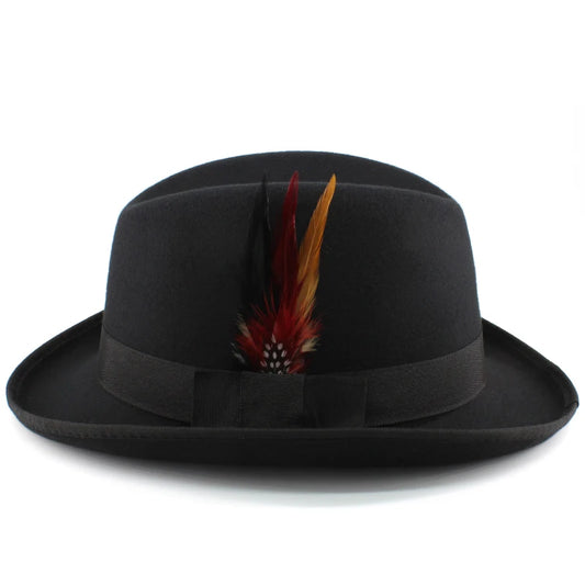 Men Women Wool Blend Classical Homburg Hats Feather Band Fedora Caps