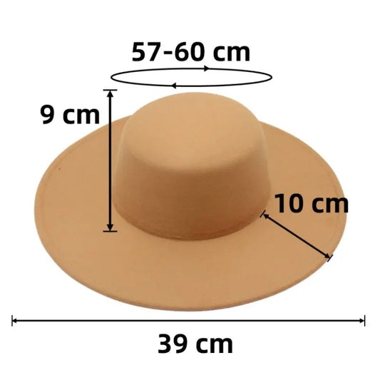 Big Wide Brim French Fedora Hat Solid Classic Wool Jazz Flat Brim