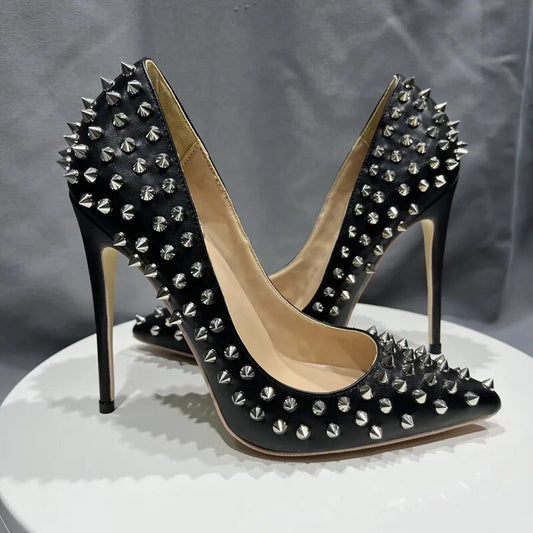 All Spikes Rivets Women Pumps Pointed Toe Super High Party Heels